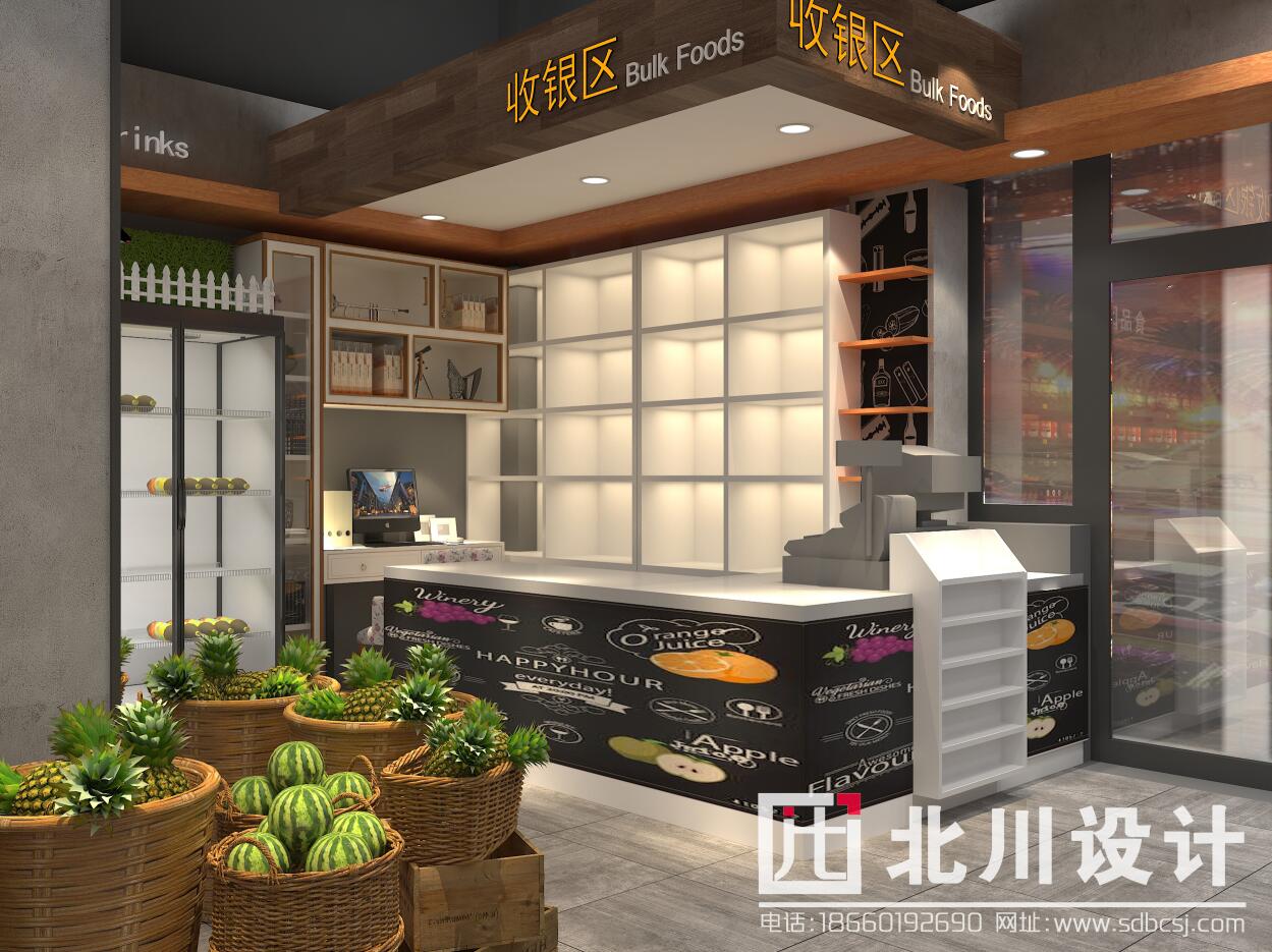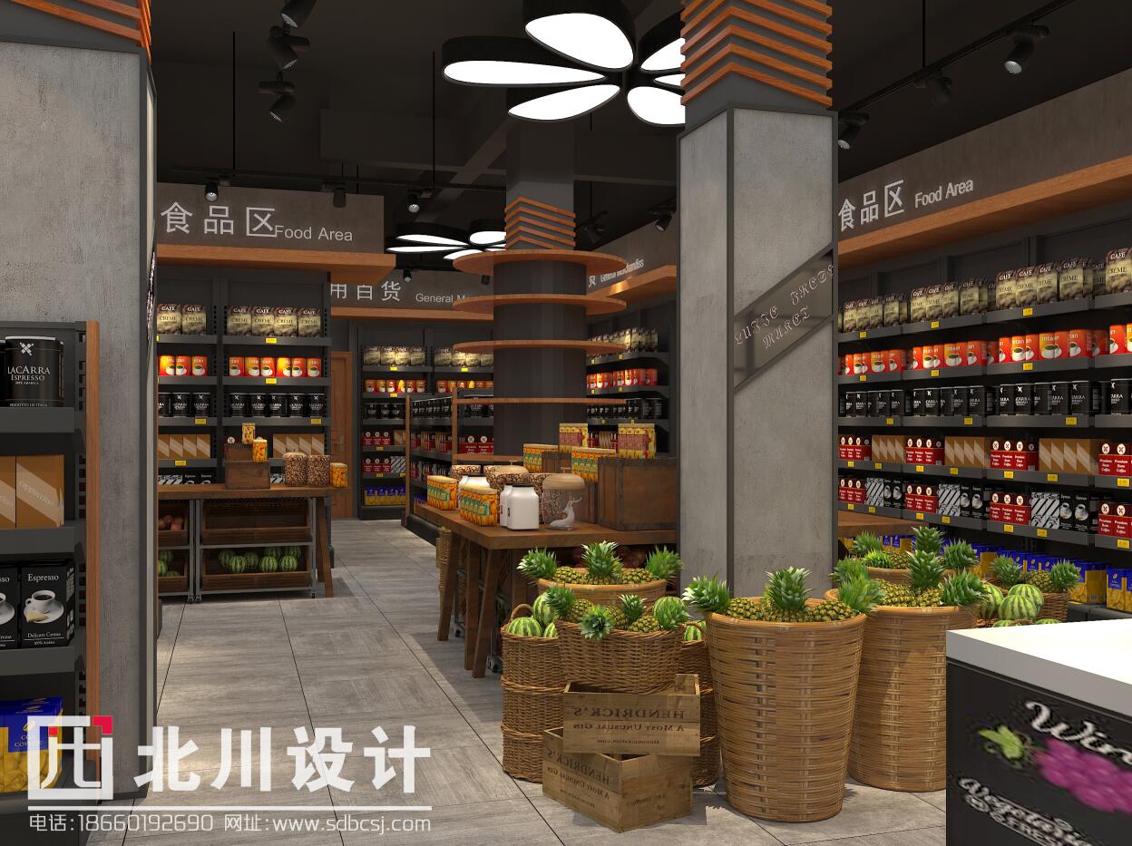 本案超市項(xiàng)目位于山東省鄆城縣,帝景灣小區(qū),周邊小區(qū)居民較多且小區(qū)周圍有幾年夫妻便利店面積大小均未超過100平方米店且沒有精品超市,周邊商業(yè)環(huán)境較好。綜合考慮購(gòu)物中心物業(yè)對(duì)本項(xiàng)目環(huán)境定位較高,周邊客源較多,故項(xiàng)目裝修設(shè)計(jì)定位為:精品超市。